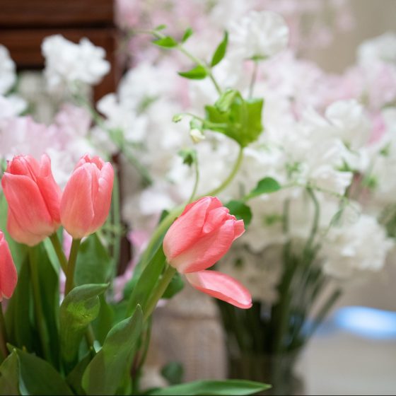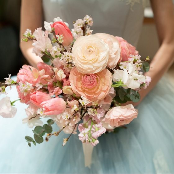 あとはチューリップやかすみ草、ピンクと白の可愛い春らしいお花でいっぱいのお花畑にしていただきました!