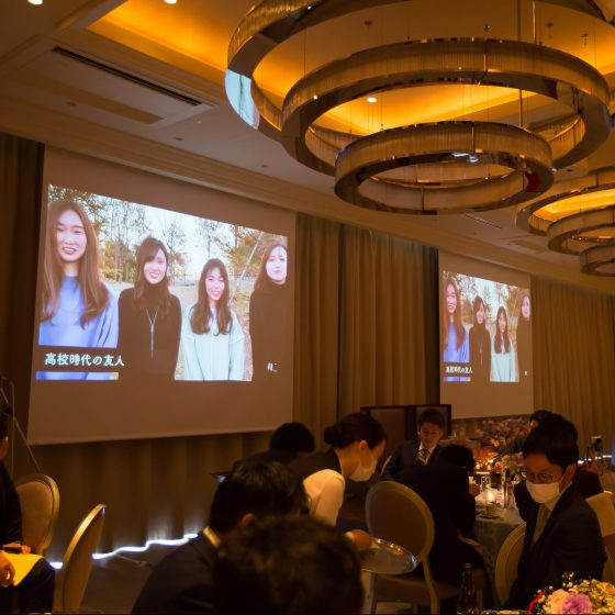 見学の際に実際の披露宴会場で入場時の演出(プロジェクションマッピング)を見せてもらい「この演出がしたい!」と2人で気持ちが高まりました。また事前アンケートで好きなものを書いたところ、見学の途中でそのテーマパークをモチーフにした式のアイディア等をいろいろ教えていただき、まだはっきりしていなかった「こんな式にしたい!」というのが少しずつ形が見えてきたこともKOTOWAに決めた理由でした。