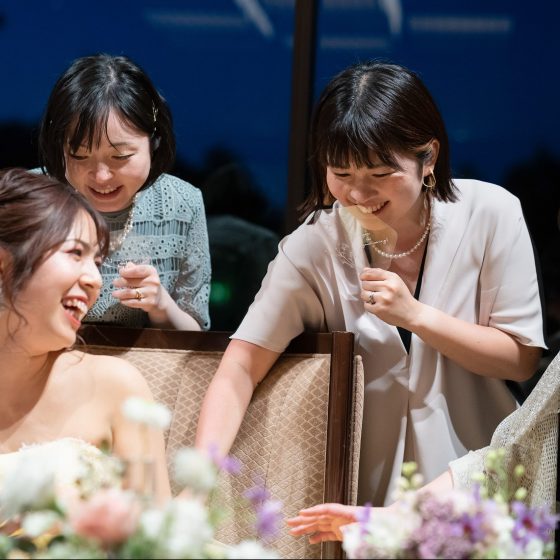 プランナーさんとの思い出で特に印象深いのは、前撮り撮影時に新郎の作っている大根にカメラマンさんが興味をもってくださり、後日皆さんにお渡ししたらとても喜んでくださったことです。披露宴当日にも大根を使った一品を追加しゲストに食べていただきたかったのですが、新型コロナウィルス感染拡大の影響もあり式が延期し、大根の収穫も終了してしまい、振る舞うことはできませんでした。ですが料理長さんをはじめ皆さんに食べて頂いて喜んで頂けたので良かったと思っています。