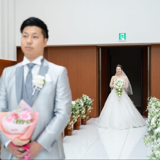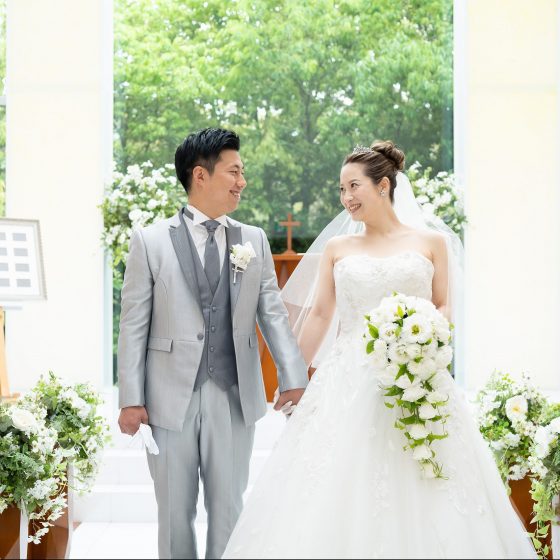 初めて見学した際に開放感あるクリアなチャペルに一目惚れしました。真っ白な壁に天井が高く大きな窓ガラスから青空が見え凄く感動したのを覚えています。