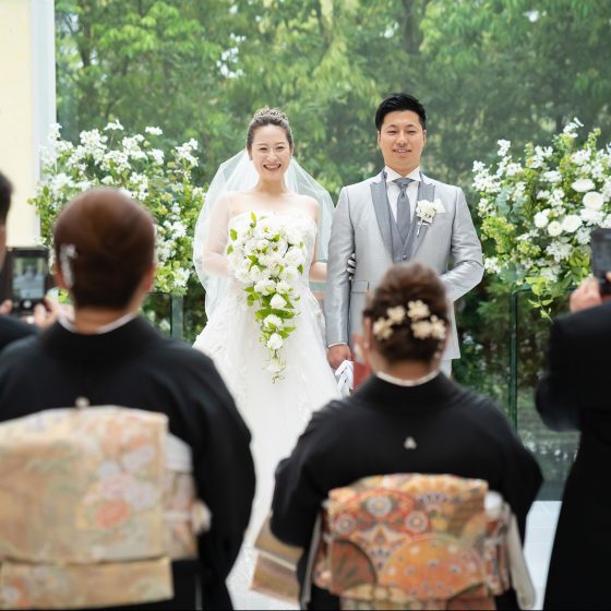 式当日は8ヶ月の予定で急遽マタニティドレスへと変更になり、衣装も初めから、打ち合わせも変更する所が出るなどとなりましたがプランナーさんをはじめ、スタッフの皆様の迅速な対応、優しさに不安だった気持ちが凄く救われました。体調面も気遣い下さり安心しながら進めることが出来ました。