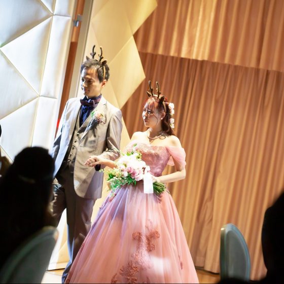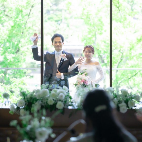 アットホームで奈良らしい結婚式をテーマにしました。普段はなかなか会えないゲストとの時間を大切にしたかったのと、披露宴会場からの奈良らしい景色をのんびりと味わってもらいたかった想いを込めました。