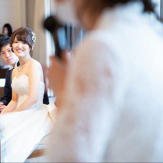 ブライダルフェアに参加させていただいて、まず式場の雰囲気がわたしたちのイメージにぴったりでした!本番の雰囲気のようにチャペル入場もやっていただいたんですが、扉を開けた瞬間のチャペルの素敵さに鳥肌が立ったのを覚えてます。
