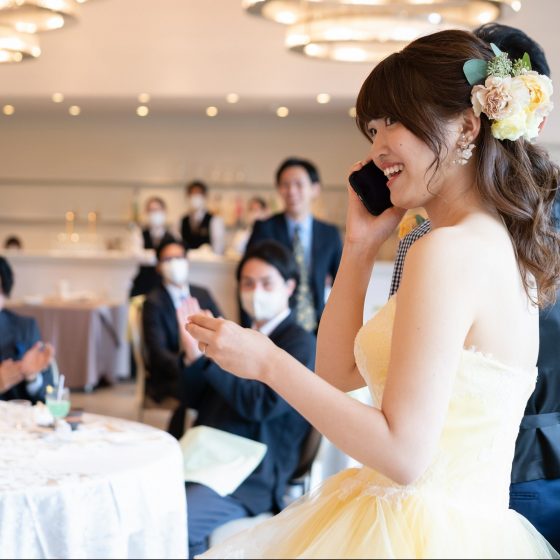 友人のみという特別な機会というのもあり、ゆっくり話ができる時間を設けたかったので、写真撮影の時間を少し長めにとってもらいました。また、楽しんでもらいたいという思いもあったので、友人に余興はお願いせず、ドレスの色当てゲームとは別に、こちらで簡単なゲームとプレゼントを準備しました。