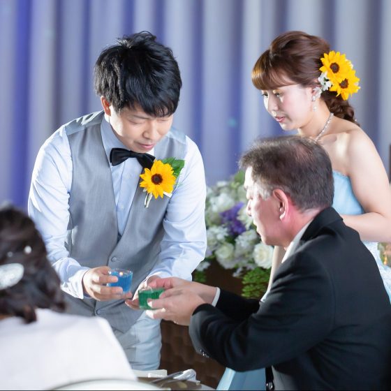 余興をお願いするとコロナのことで何かあった時お互い気分悪くなるし、でも何もないのも…と思い、私たちからゲームを考えました。私たちのやりたいことをやり、でもゲストの方も楽しんでいただけてよかったです。また、縁起物も今までに見たことないものだったので、お出しカクテルにしました。周りの友達とも被らず、ゲストの方も見たことない!こだわりを感じる!と言ってくれました。とにかく、ゲストの方に楽しんでもらえてよかったです。