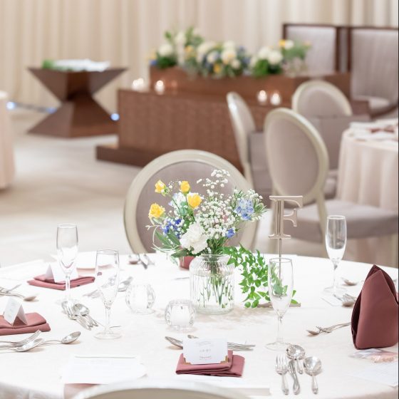 親戚だけの式で、歓談の時間が多かったので、ゆっくりはできるけど、退屈にならないように会場の力を借りて、色んな演出を取り入れました。それに伴い色んな準備があり大変でしたが、考えている最中もワクワクして楽しかったです。