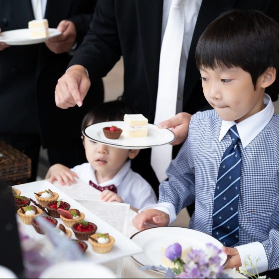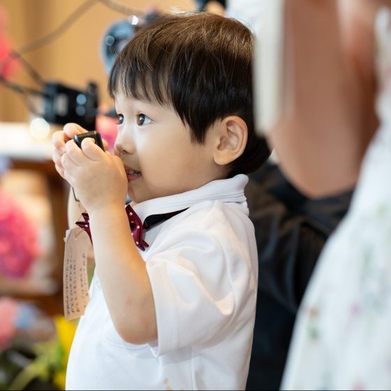 今回お子さんが数名おられて、コロナの状況でキッズスペースの設置が難しいことから、何か面白いことはできないかと考え、インスタントカメラをゲストに撮ってもらうことを実施しました。子供用には、名前のタグもつけて「こどもカメラマンをお願いします!」とメッセージを付けると、みんな楽しそうに写真を撮ってくれました。周りを巻き込んで笑っている姿を見ると、用意して良かったなと実感できました。