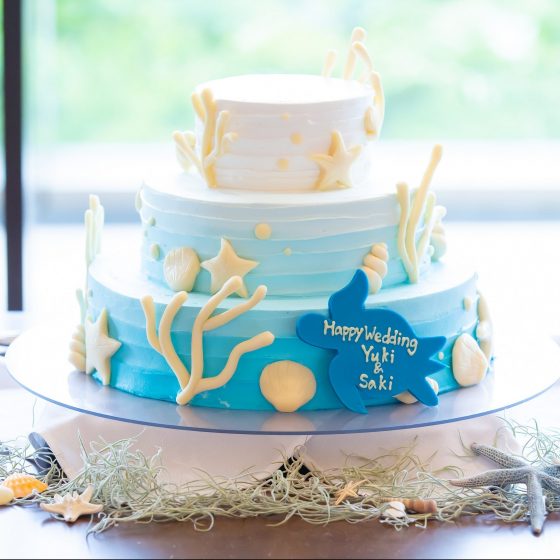 ウミガメと貝殻系を使ったケーキをお願いしました!