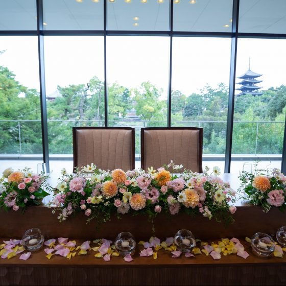 立地もですがなんといってもやはり決め手になったのが披露宴会場から見える五重塔‼︎それを眺めながら料理を食べてもらえるのは最高だなと想像し決定しました。