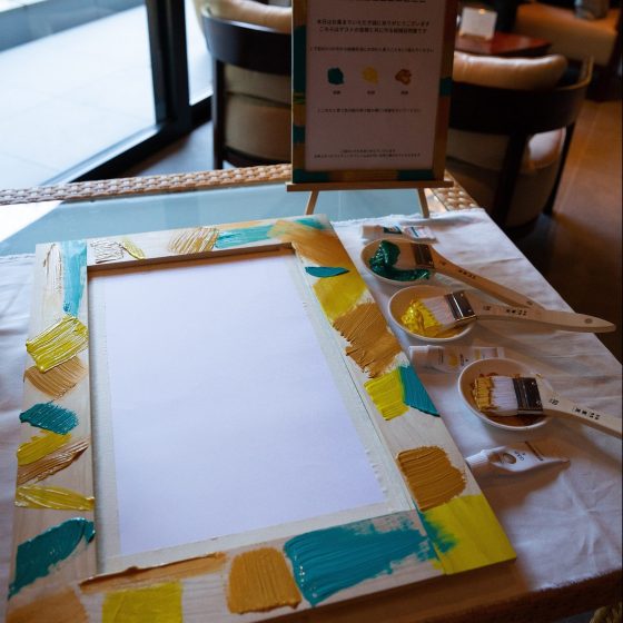 ペイント後画用紙を剥がして飾った際にフレームの正体が鏡だと驚いてもらいました。