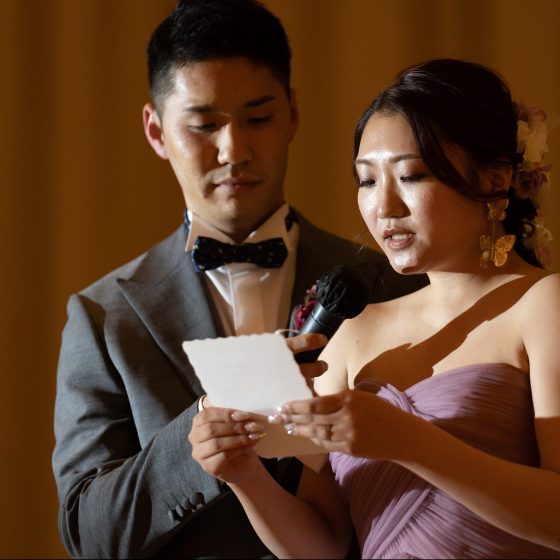 披露宴が始まる前には緊張で固まっていましたが、