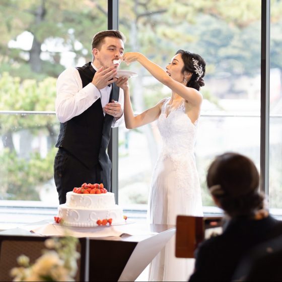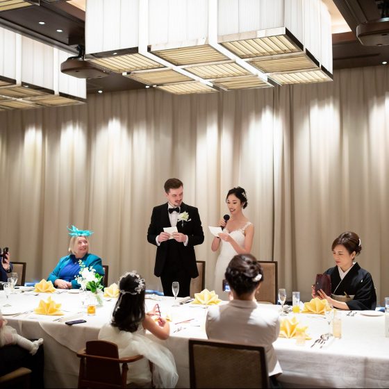 できるだけ言葉の壁を感じないように日本語と英語での式や食事会、