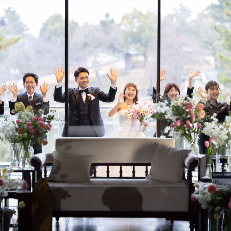 また、五重塔を背景に楽しめるパーティー会場の様子が奈良らしくてよかったです。改修工事が始まると聞いていましたが、五重塔に幕がかかったとしても、魅力的な式場だと思いました。駅から歩いてすぐに来れる立地もよかったです。