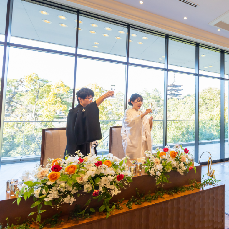 猿沢池の真前で披露宴会場から五重塔が見えるというのがいいなと思ったし、