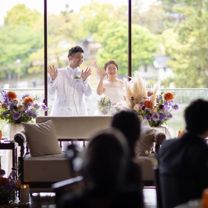 立地に関しては徒歩で駅から歩ける範囲内ということが県外からも多数来ていただく私たちにとってとても大きなポイントとなりました。また周りも奈良公園があったり 駅近なので結婚式後にどこかにご飯に行かれたりするのも行きやすい場所でしたので 尚更良かったです。