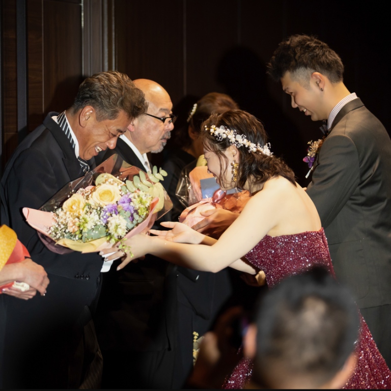 プランナーさんとの思い出は、いつもニコニコとされていて相談しやすい環境を作ってくださっていました。また、些細な分からないことでメールで連絡をしても 翌日には必ずご返信いただけ 安心して相談できました。準備期間では BGM決めで担当していただいた方が 会話を楽しみながら一緒に決めてくださったのも印象的です。当日は、バタバタしながらでも ゲストを見る度に楽しそうで笑顔であり こちらも挙げて良かったと思う式になりました。