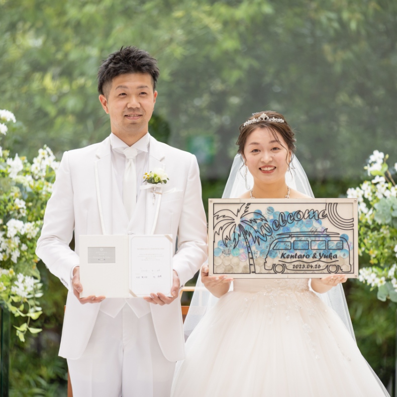 また 特に大きな決め手となったのは会場に入ってしまえば チャペルから披露宴会場まで外に出なくていいというのは雨女と言われがちなこちらにとってとても良かったです。またチャペルも当日も雨や曇りだったのですが 外の光が存分に入り 白を基調としている為、華やかになりそこも一目惚れのポイントでした。また試食有りの見学だったのですご飯がとても美味しく、料理で妥協したくなかった私達にとってとても大きなポイントでした。
