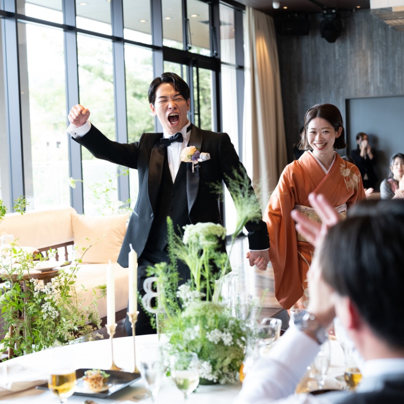 当日の結婚式、披露宴を終えて、思うことは「もう一回やりたい」です。準備からずっと楽しかったので、そこからはじめたい。自分たちの後悔のない理想の結婚式を執り行えた喜びと、ゲストが狙い通りに笑顔で過ごしてくれたあの時間はこれからもずっと二人の財産だと思います。