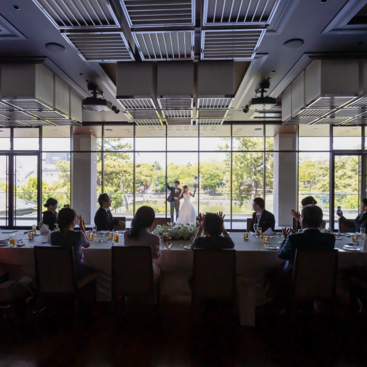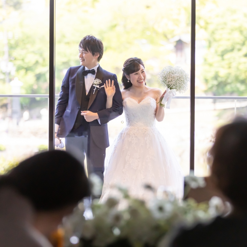 披露宴の入場シーンでは、通常の扉ではなく、テラスから入場しました。