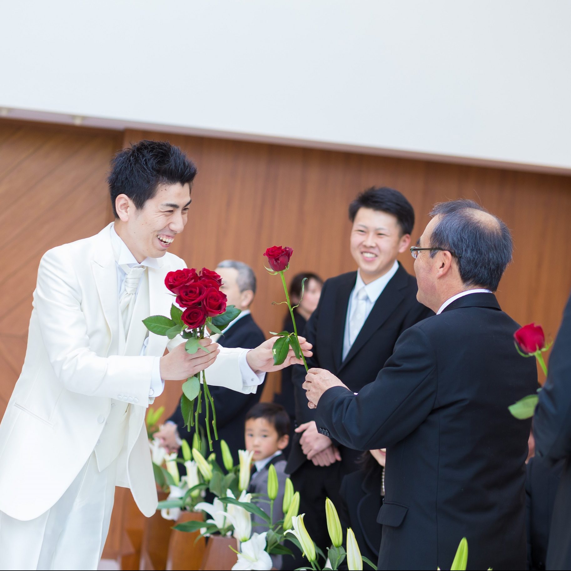 赤い薔薇を使用したダーズンローズは新郎が登場しゲストから薔薇を受け取るため、
