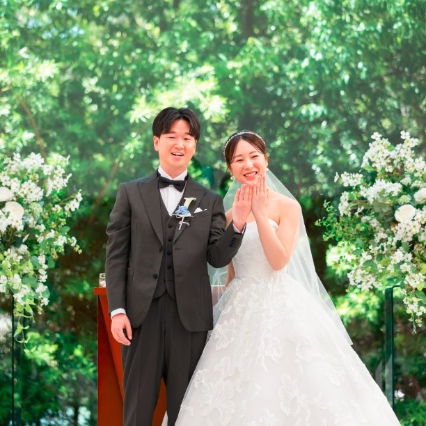 当初は大阪で自然豊かで緑のある式場を探しておりましたが、納得のいく場所が見つからずにいました。そんな中、こちらの式場を見学したところ私たちの思い描いた雰囲気にピッタリでした。