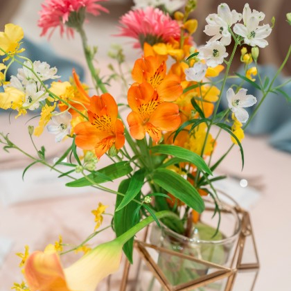 お花に関してもラグジュアリーというよりはカジュアルにカラフルにとお願いしました。