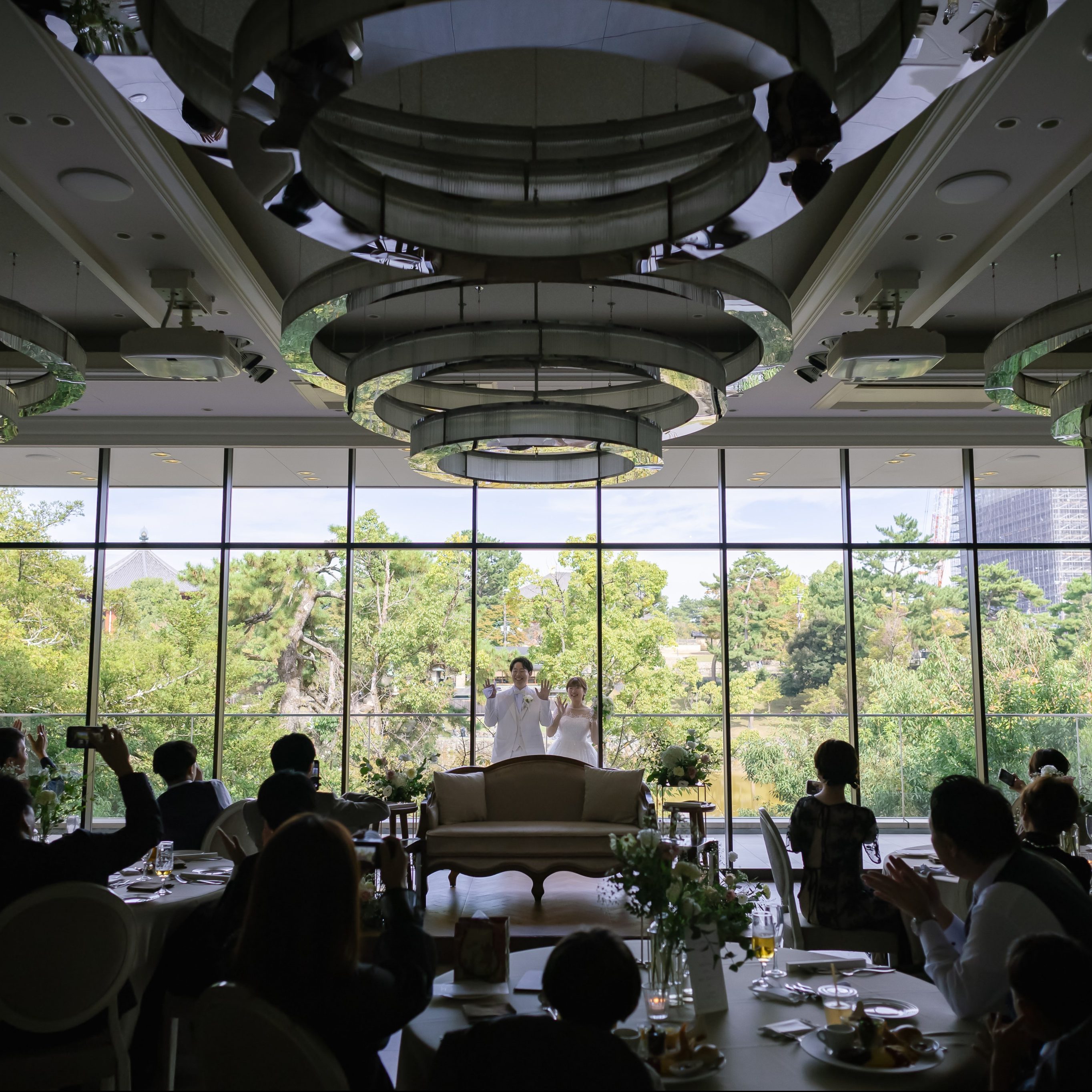 披露宴会場では、窓から見える奈良公園や五重塔の景色がとても綺麗でした。