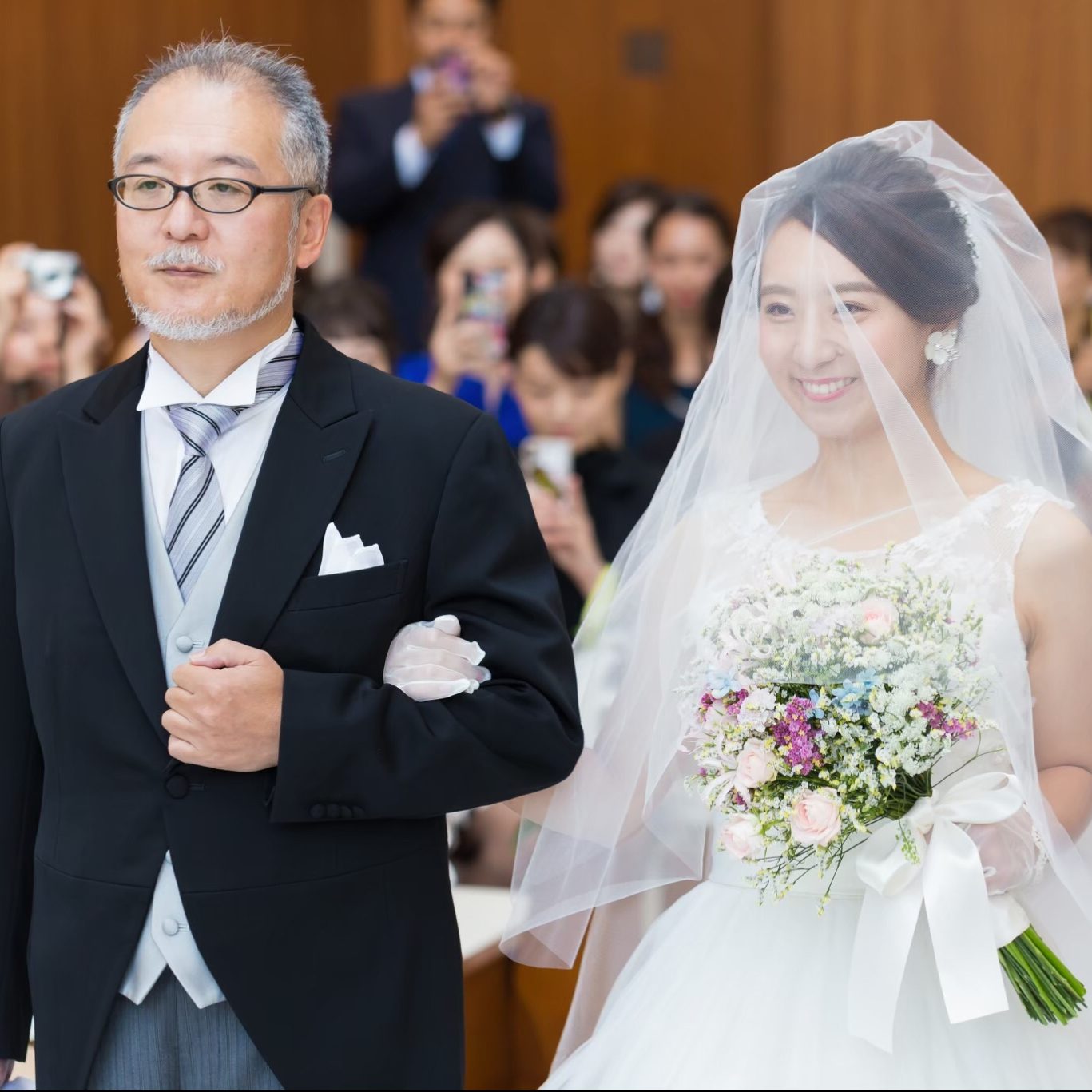 大好きなゲストに囲まれながら大好きな人の元へ大好きな人と入場する。