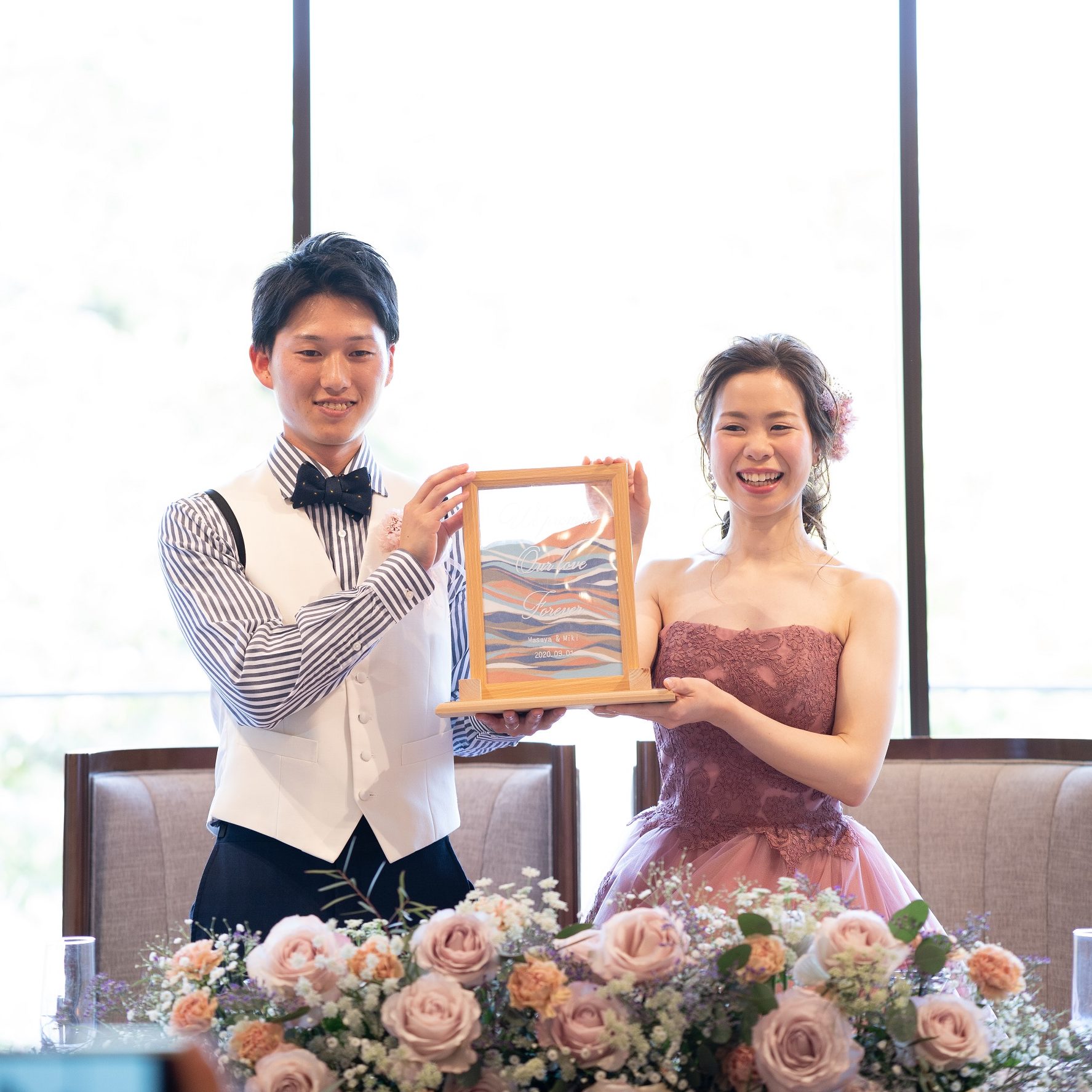 BGMで新郎が好きなアーティストの曲を入場曲やケーキ入刀で流してもらった事や、ファーストバイトで、お互いが好きな釣りをイメージして、釣り竿にぶら下げたお魚クッキーを新郎に食べてもらう演出を出来た事も凄くいい思い出です!