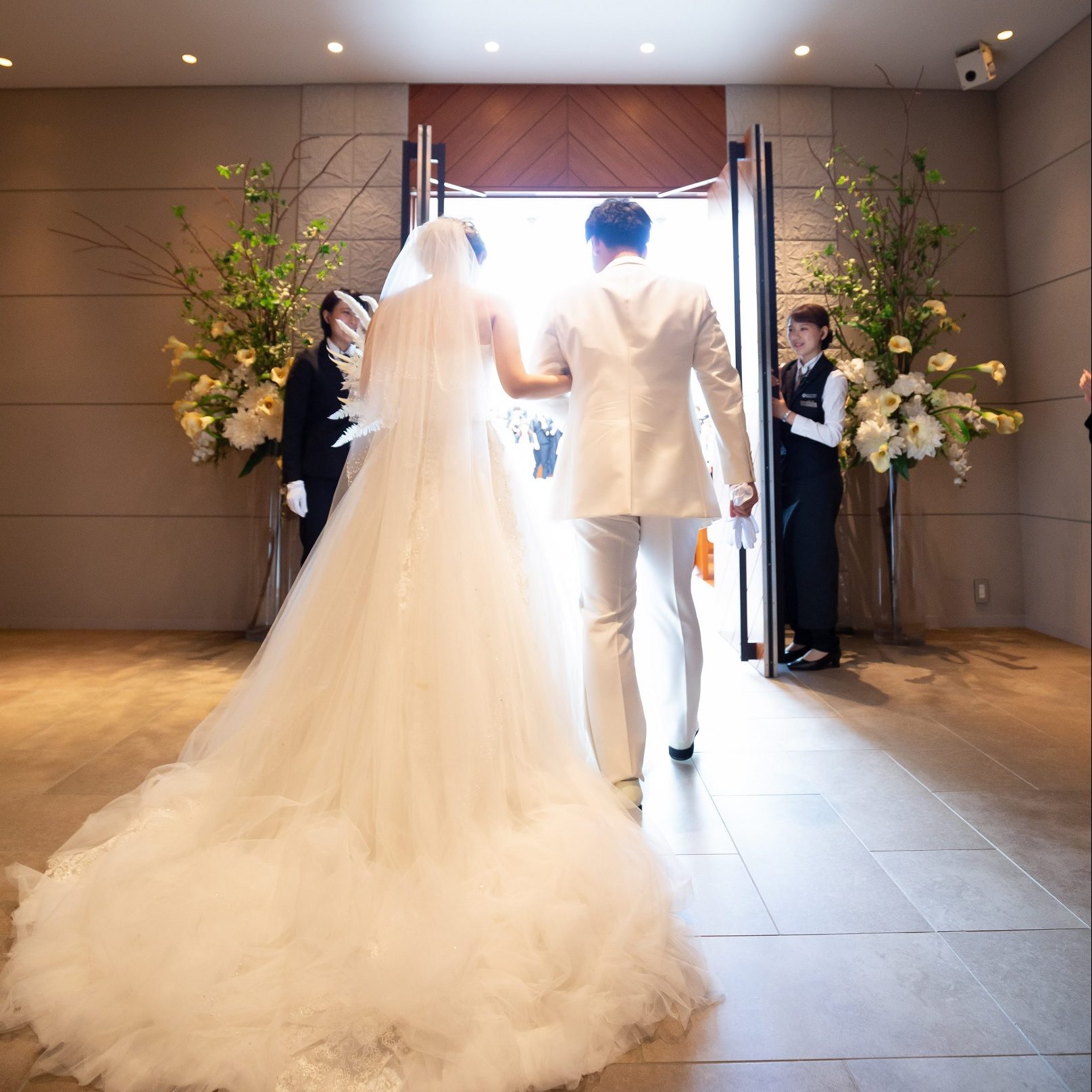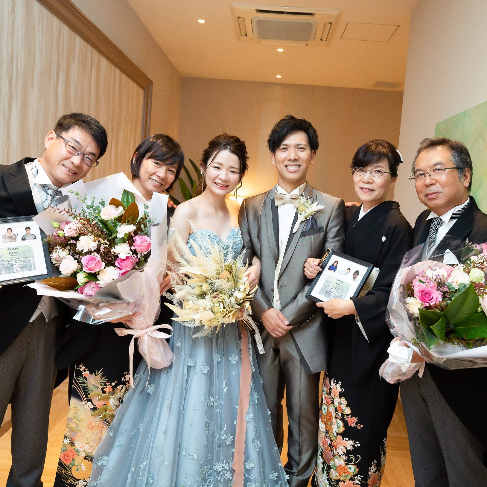 ベールダウンやバージンロードは嫁ぐ娘への両親の思いの場ですが、新郎の両親も何か一家の主人としてこれから担っていく息子への思いの場を残せないかと思い提案しました。旦那さんや新郎の両親は最初戸惑っていましたが当日旦那さんへお父さんがジャケットを着せた時に小声で「行ってこい」と言い、お母さんはブートニアを付け、両親から息子への思い出が増え、旦那さんも胸が熱くなったそうです。