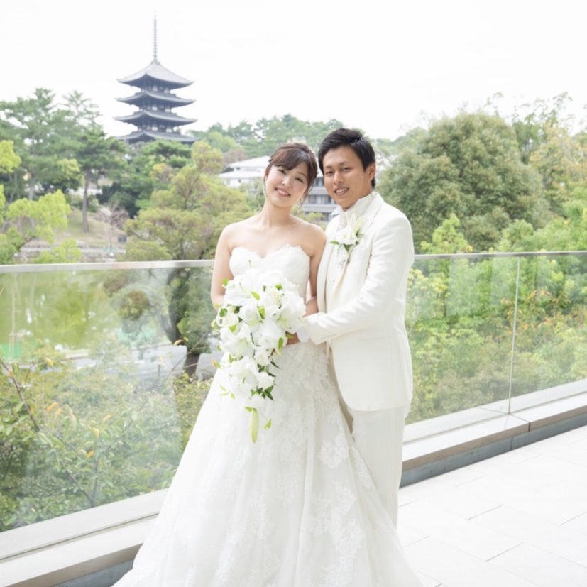 パーティー会場から五重の塔や猿沢池など奈良の雰囲気を感じれる景色がとても魅力的で、大阪に住んでいるおじいちゃんやおばあちゃん、そして結婚式に招待した人たちにも同じような事を感じてもらえたら良いなと思ったのもこの式場に決めた理由の一つです。