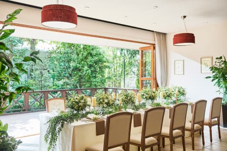 開放的なバンケットやラウンジ、緑いっぱいのガーデンを備えた貸切邸宅は、おふたりのためだけの特別なパーティーステージ。心地よい空間と美味しい料理、自由な演出でおもてなしすれば、心が満たされる幸福な一日になるはずです。おふたりの感謝の気持ちがそのまま伝わり、ゲストとの距離が縮まる、アットホームなパーティーをお愉しみください。