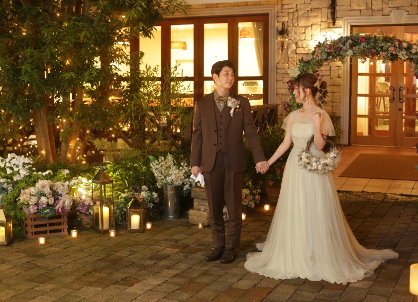 ライトアップされたガーデンにぴったりなとてもおしゃれなお2人♪