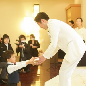 挙式では甥っ子くんと姪っ子ちゃんにリングボーイとリングガールのお役目を