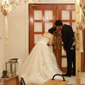 こちらは披露宴会場をこっそり覗いている新郎新婦様!