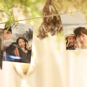 おふたりの思い出のお写真をガーランドにして飾っていただきました^^