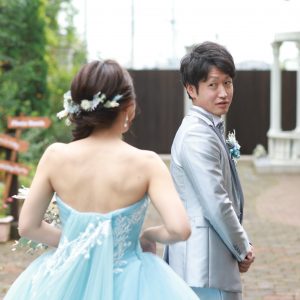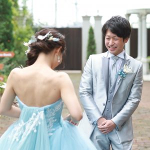 美しいブルーのカラードレスを身にまとったご新婦様が♪