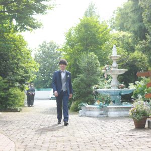 新郎様 ガーデンの小道からご入場