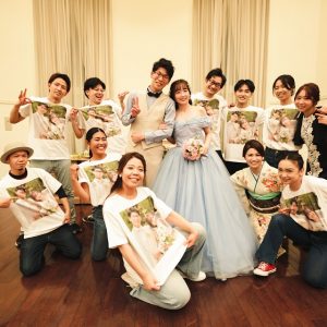 ご友人様のTシャツには前撮り時のお2人お写真が★