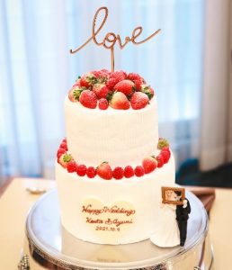 お持ちいただいたケーキトッパーはなんとお2人のお名前入り!