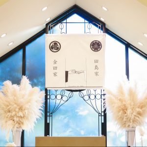 チャペルにはご両家の家紋を飾り、和の雰囲気を演出!
