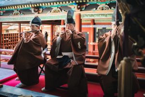 日光二荒山神社では【本物の神前式】にこだわっているからこそ、雅楽の生演奏の中、神前式を執り行うことができます。