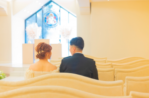 当日は祭壇に立つお二人ですが、今日はゲストの皆様がお座りになるソファから一枚♪