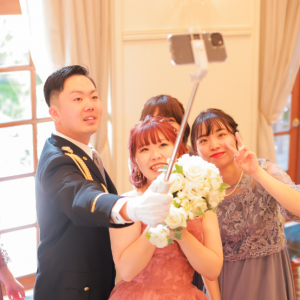 再入場後はゲストの皆様と新郎新婦様のスマートフォンを使って