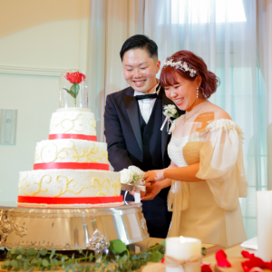 ウェディングケーキもお二人のイメージ通りのオリジナルケーキを作成♪