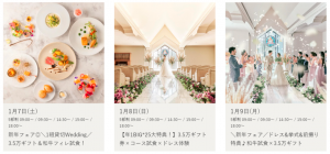 人気の春や秋の日程は1月のブライダルフェアで大きく変動があることが予想されますので