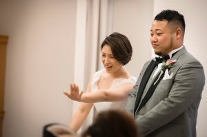 「お二人のご結婚を承認してくださる方は大きく丸をつくってください!」