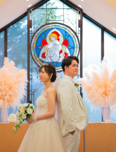 すりガラスからは優しい自然光が入り、おふたりの晴れ姿をより際立たせてくれます。