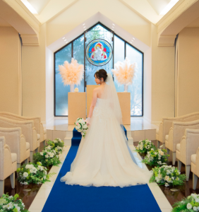 温かい白を基調としたアットホームなチャペル。