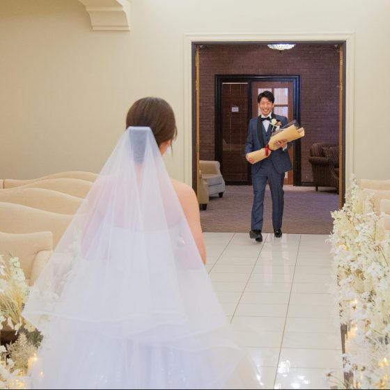新婦様おひとりで新郎様の入場をお待ちしています。